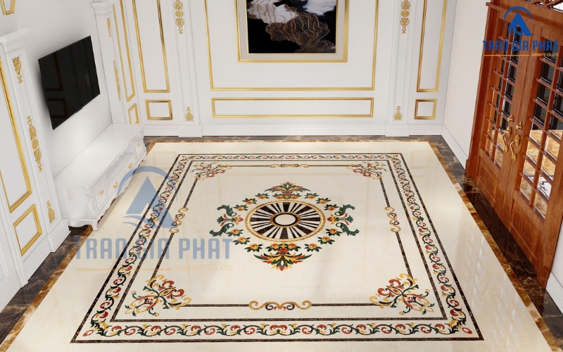 - Lắp đặt thuận tiện, nhanh chóng: Mặc dù là sản phẩm cao cấp yêu cầu kỹ thuật, việc thi công đá hoa văn không quá phức tạp nhờ quy trình sản xuất và cắt ghép CNC chính xác sẵn từ nhà máy. Thường thì các tấm hoa văn đã được chế tác hoàn thiện theo kích thước đặt trước, khi vận chuyển đến công trường chỉ cần tiến hành lát ghép vào nền là xong. Thời gian thi công vì vậy khá nhanh chóng và gọn gàng, không làm gián đoạn công trình lâu.