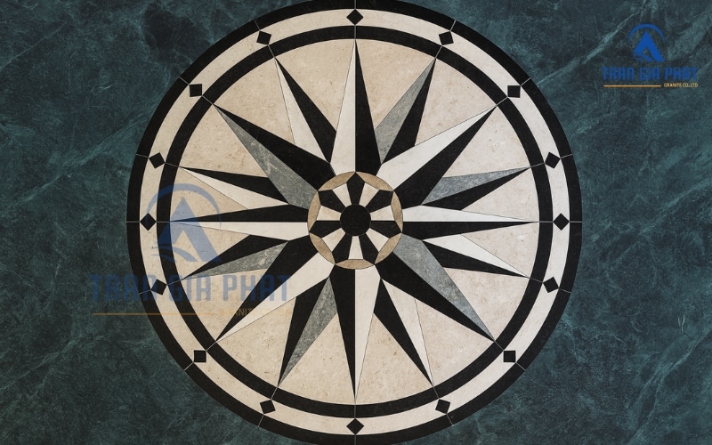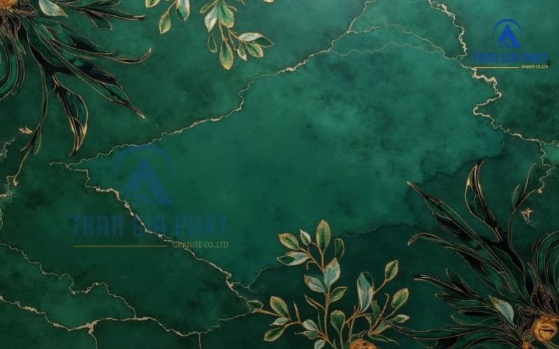 Đá marble xanh cũng phù hợp để làm viền trang trí, logo hoặc các họa tiết nhỏ trong các mẫu hoa văn. Nhờ độ tương phản cao, những mảnh đá xanh lồng ghép trong bố cục tổng thể sẽ làm nổi bật đường nét, tăng chiều sâu và giá trị thẩm mỹ cho thiết kế.
