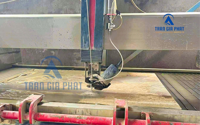 Do đó, bước chuẩn bị vật liệu luôn bao gồm mài phẳng mặt đá trên máy mài hoặc kiểm tra cân bằng bàn máy trước khi chạy hoa văn tinh.