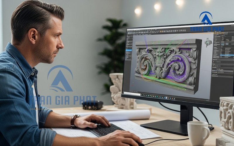 Phần mềm thiết kế và lập trình tối ưu: Để tạo ra hoa văn sắc nét, không thể thiếu sự hỗ trợ của phần mềm CAD/CAM chuyên dụng. Phần mềm CAD cho phép thiết kế mẫu hoa văn chính xác đến từng chi tiết nhỏ. Sau đó, phần mềm CAM sẽ chuyển thiết kế đó thành đường chạy dao cho máy CNC. Một phần mềm CAM tốt có các thuật toán thông minh để tạo đường chạy mượt mà, tránh những góc cắt gấp khúc đột ngột dễ gây mẻ đá. Nó cũng cho phép đặt bước cắt rất nhỏ và mịn khi cần khắc tinh xảo.