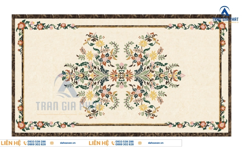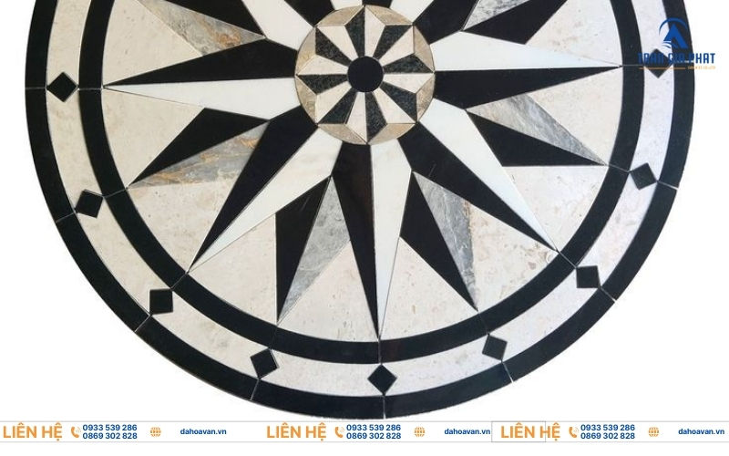Đá hoa văn là loại vật liệu đá tự nhiên được chế tác thành các họa tiết, họa tiết trang trí trên bề mặt phiến đá. Thông thường được tạo ra bằng cách sử dụng công nghệ CNC để cắt và ghép các mảnh đá cẩm thạch, granite với nhau thành các hình khối, hoa văn phức tạp và chính xác. Mỗi khổ đá hoa văn vì thế giống như một tác phẩm nghệ thuật độc đáo, mang đậm giá trị thẩm mỹ cá nhân hóa, phù hợp với phong cách thiết kế của gia chủ hoặc dự án.