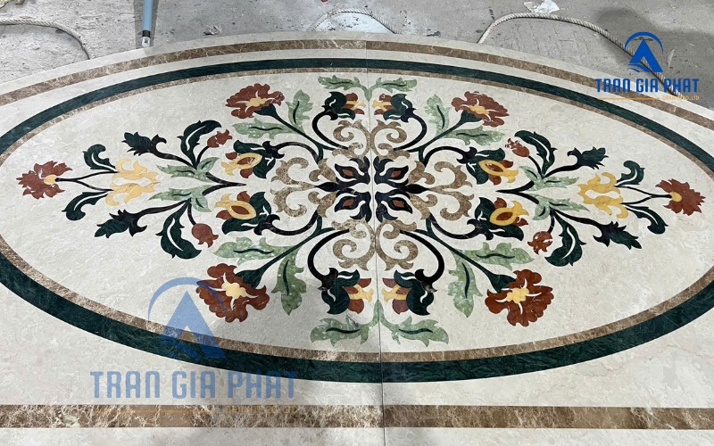 A: Hoa văn đá tự nhiên được thi công đúng kỹ thuật sẽ rất bền chắc và khó nứt vỡ. Bản thân đá Marble, Granite có độ cứng cao, chịu lực tốt. Khi lát hoa văn, các tấm đá thường dày 2cm trở lên, được dán trên nền bê tông phẳng bằng keo chuyên dụng nên khả năng chịu tải trọng lớn (người đi lại, đồ nội thất) rất tốt. Nếu sàn được chuẩn bị kỹ và chà ron đúng cách, hoa văn đá có thể trường tồn hàng chục năm mà không nứt. Lưu ý nhỏ: tránh để vật siêu nặng tác động tập trung một điểm hoặc sàn nền bị lún không đều sẽ hạn chế tối đa nguy cơ nứt vỡ.